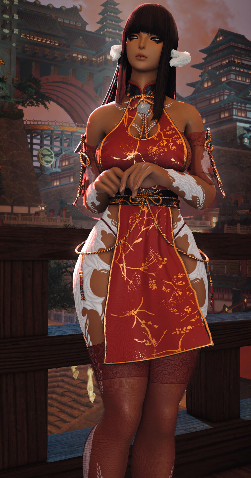 Raiko is the daughter of the renown traveling Doctor Rikimaru of Bukyo and the humble fisherwoman Lan Ly in Nagxia, where Raiko spent her first few turns as an infant.At the dying request of her mother, Raiko was passed on to a strange family friend. Her new found family were mercenaries located in Rabanastre that sought to undermine the ruling Imperial hold over the kingdom of Dalmasca.It was a rough life to grow up in the shadows of the Lowtown district, but Raiko found herself pampered like a princess by her caretakers. While they were dangerous killers to most, they were a loving collective towards her. Her primary caretaker, Richter, eventually took over the band when the previous leader and her right hand man were killed.Richter and his crew wanted anything but the life of a killer for Raiko. She was provided with as normal of a life as they could provide, but with Rabanastre's explosive destruction awakened a deeply buried wrath within her. She cut the final lingering thread of a peaceful life she had built to pursue the life of a sellsword alongside the resistance.While serving in Bozja, something changed her. Once raven black locks were now ghost white. Muddy brown eyes had turned a crimson red.With the war over, the cursed Raen finds herself displaced in a star that finally knows peace. She seeks to pursue loose ends. While she hopes to find closure, she will instead find herself stumbling into a web of conspiracies.